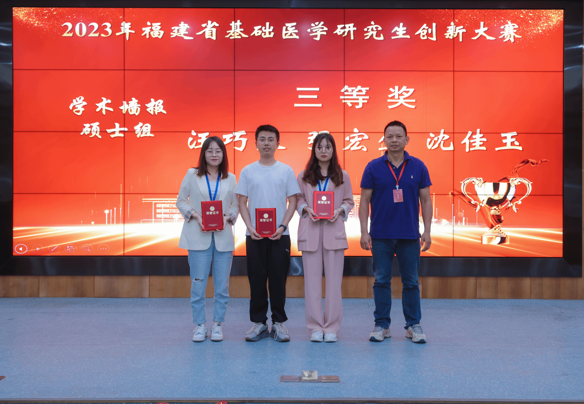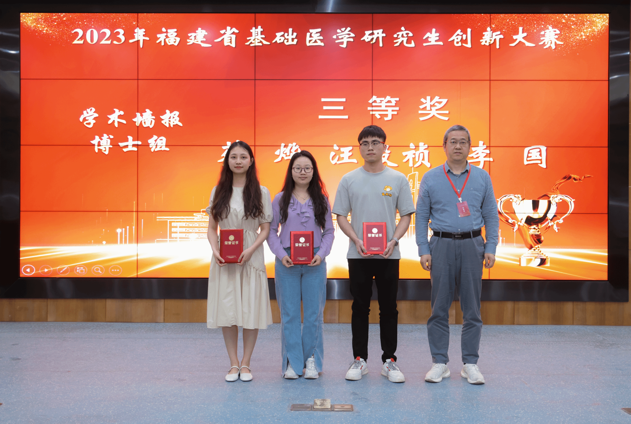 2023年5月6-7日,2023年福建省基础医学研究生创新大赛在福州举办。本次大赛由福建省教育厅主办,福建医科大学承办,旨在提高基础医学人才自主培养质量,达到 “以赛促教、以赛促学”的目标。本次大赛共有9所相关高校推荐的89名研究生参赛,其中,学术墙报博士生组15人,硕士生组26人;学术报告博士生组22人,硕士生组26人。