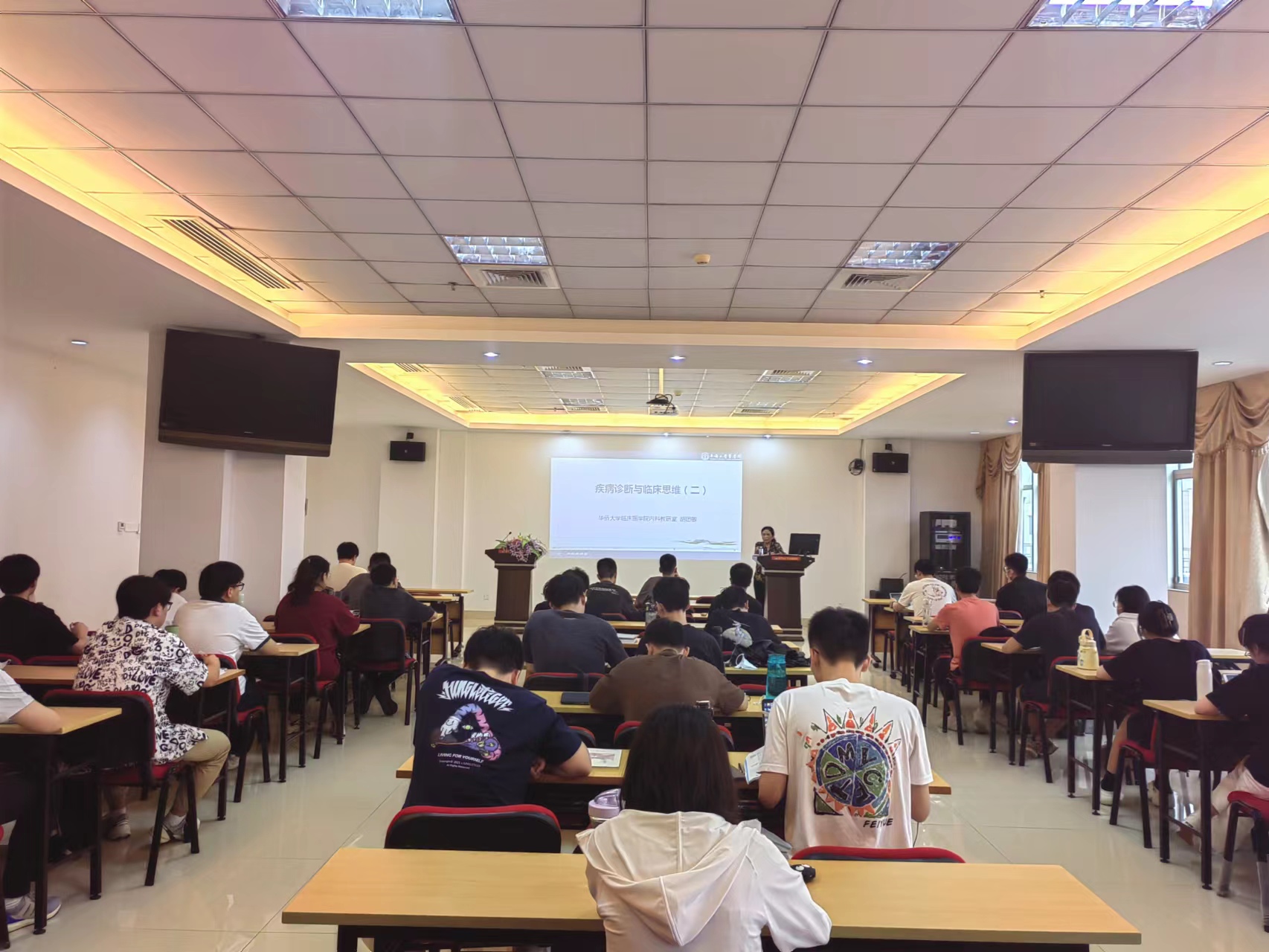 研讨课的理论授课部分于本月中旬由胡团敏教授开启了首堂课,授课议程分为三部分,第一部分教师授课,讲授诊断疾病和临床思维必须掌握的原则及重点;第二部分学生演讲,学生走上讲台,对思考病例进行的综合评价,分析判断并提出诊疗意见;第三部分教师点评总结。