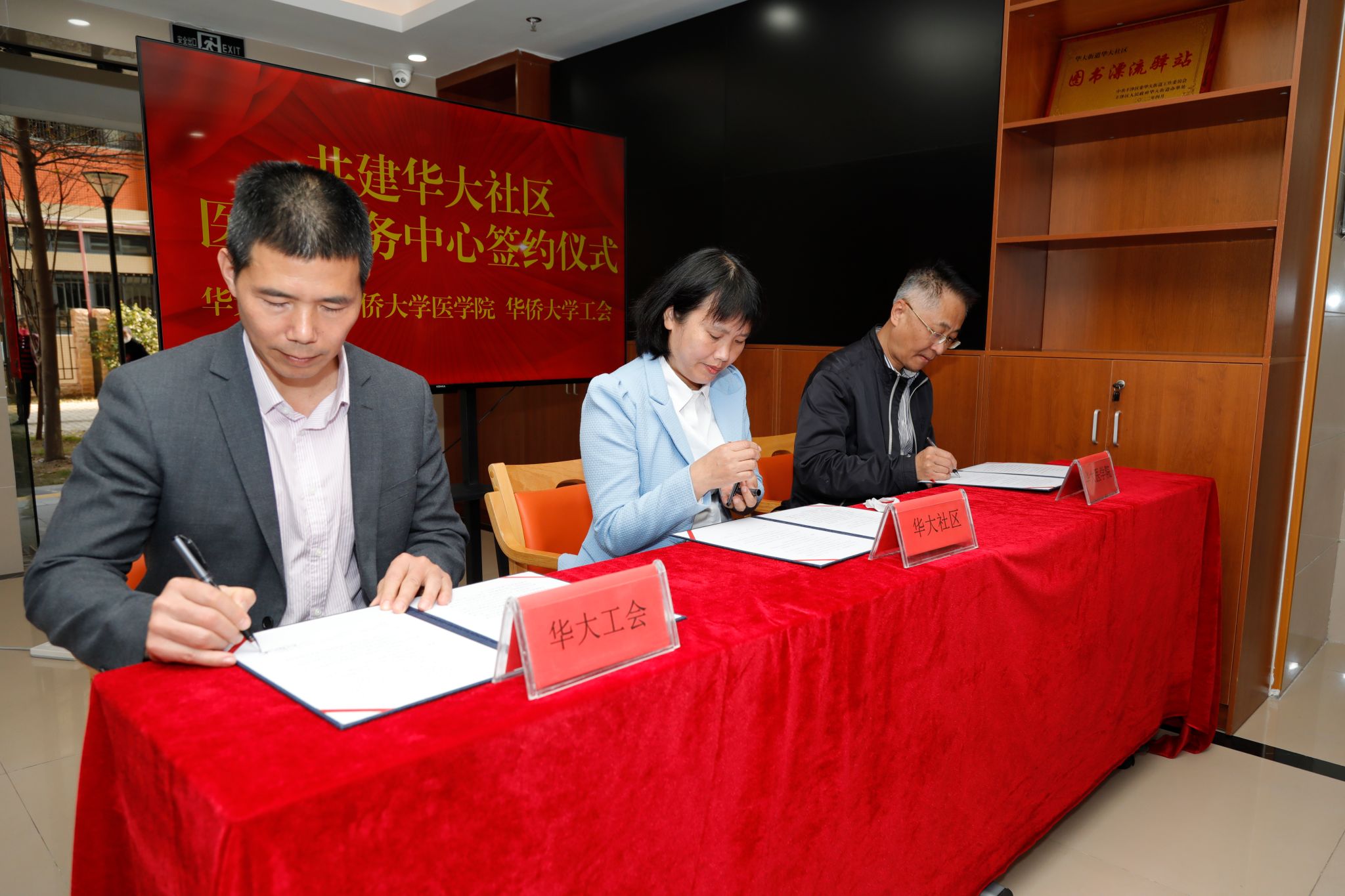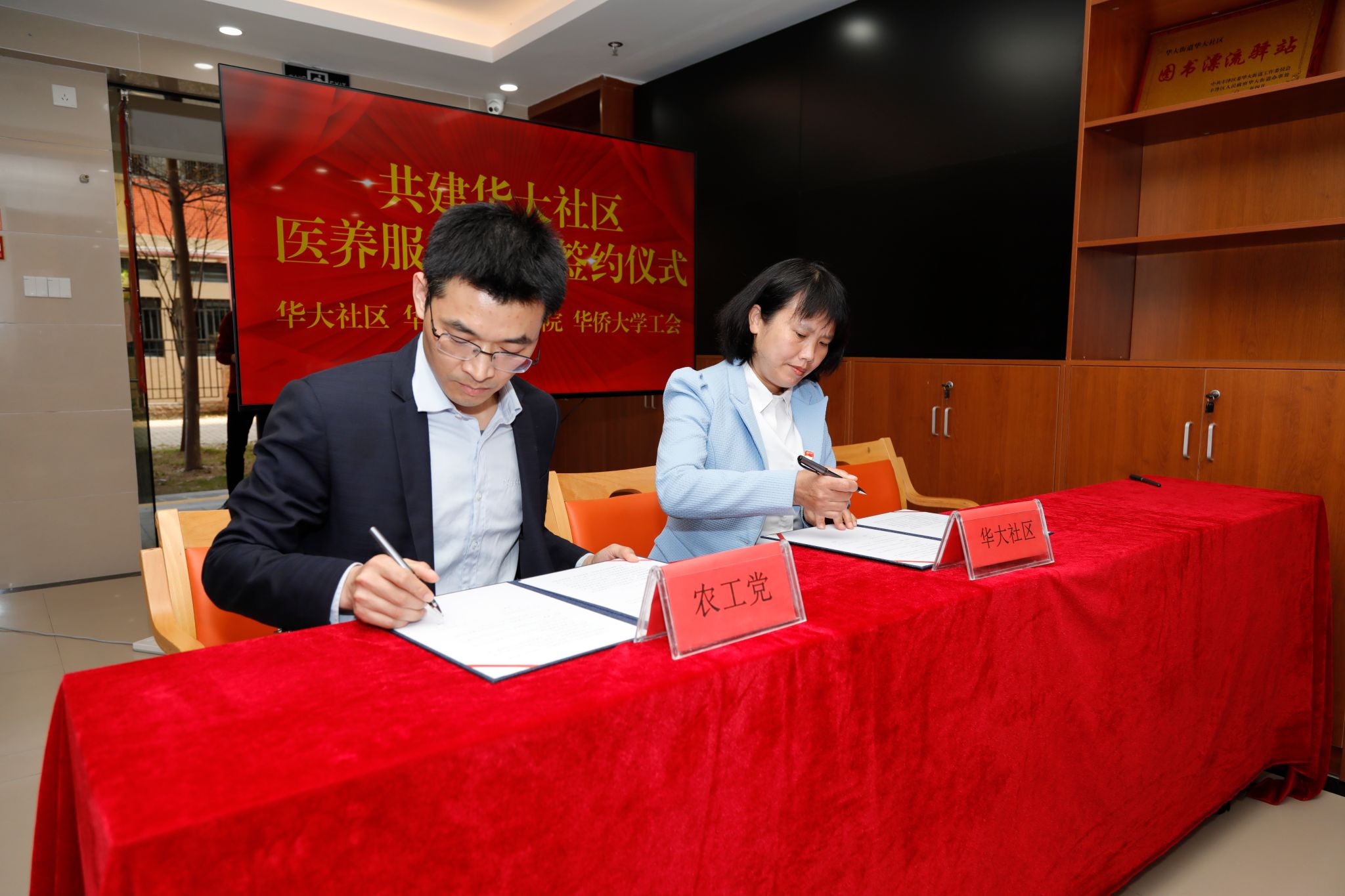 教育工会、农工党华大总支共建华大社区医养服务中心签约、揭牌仪式在华城小区华大街道日间照料中心举行。