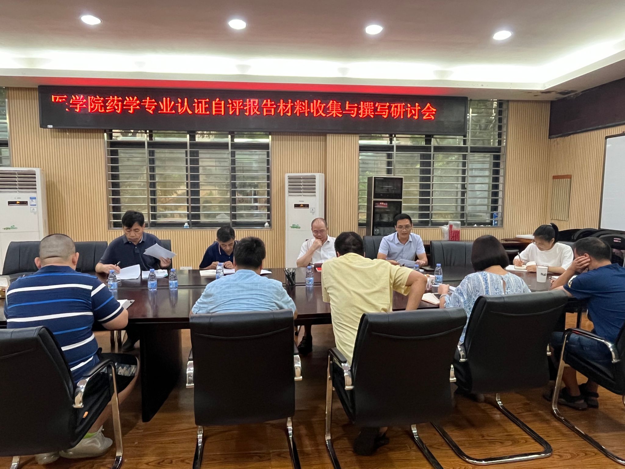 在德润楼228会议室召开药学专业认证自评报告撰写研讨会。学院党委书记武玉洁、院长刁勇、副院长李招发、副院长王福财、药学系主任徐先祥、副主任杨会勇、办公室主任徐韬、团委书记罗陈娟及自评报告撰写组全体成员参加会议,会议由副院长王福财主持。