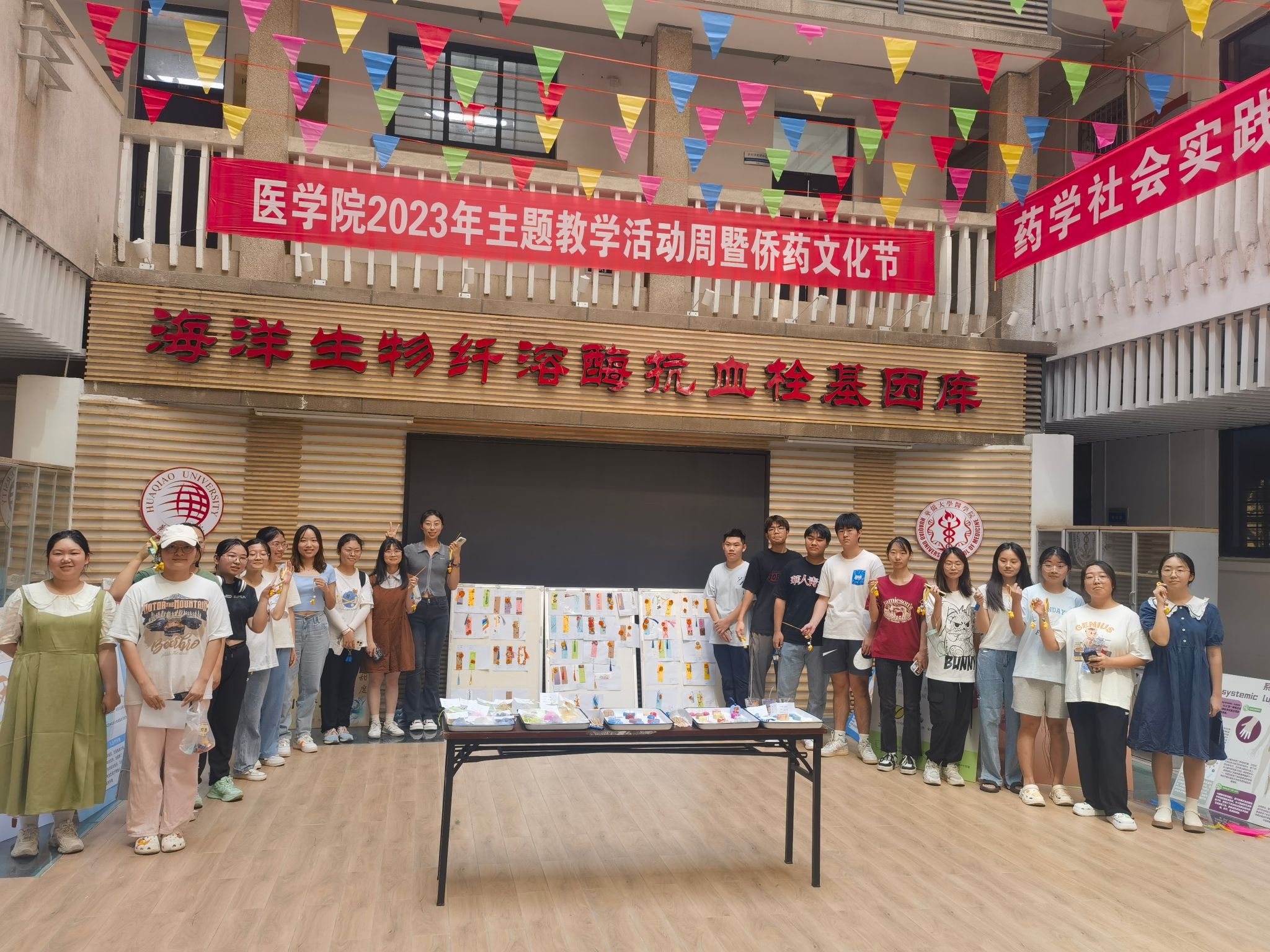 “侨药文化成果汇报交流会”在胜骏楼中庭如火如荼开展,药学系主任徐先祥老师特邀出席并致辞,朱亚玲、王晓2位老师主持,2022级药学专业全体同学参与。