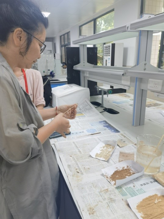 香的制作在我国有着重要的历史地位,围绕各种香品的制作和实用,而产生的民族传统和精神气质,距今已有3000多年历史。首先由王晓老师介绍了药香发展历史,包括被列入国家级非物质文化遗产代表性项目的永春香的传入及发扬,永春蒲氏家族所制香按形态及功能的分类,重点介绍了国家地理标志——永春篾香的制作工艺和特点,并进行了手工制香的演示。观察员老师也亲手进行了药香的制作。随后,同学们动手实践,分别制作了檀香和沉香。