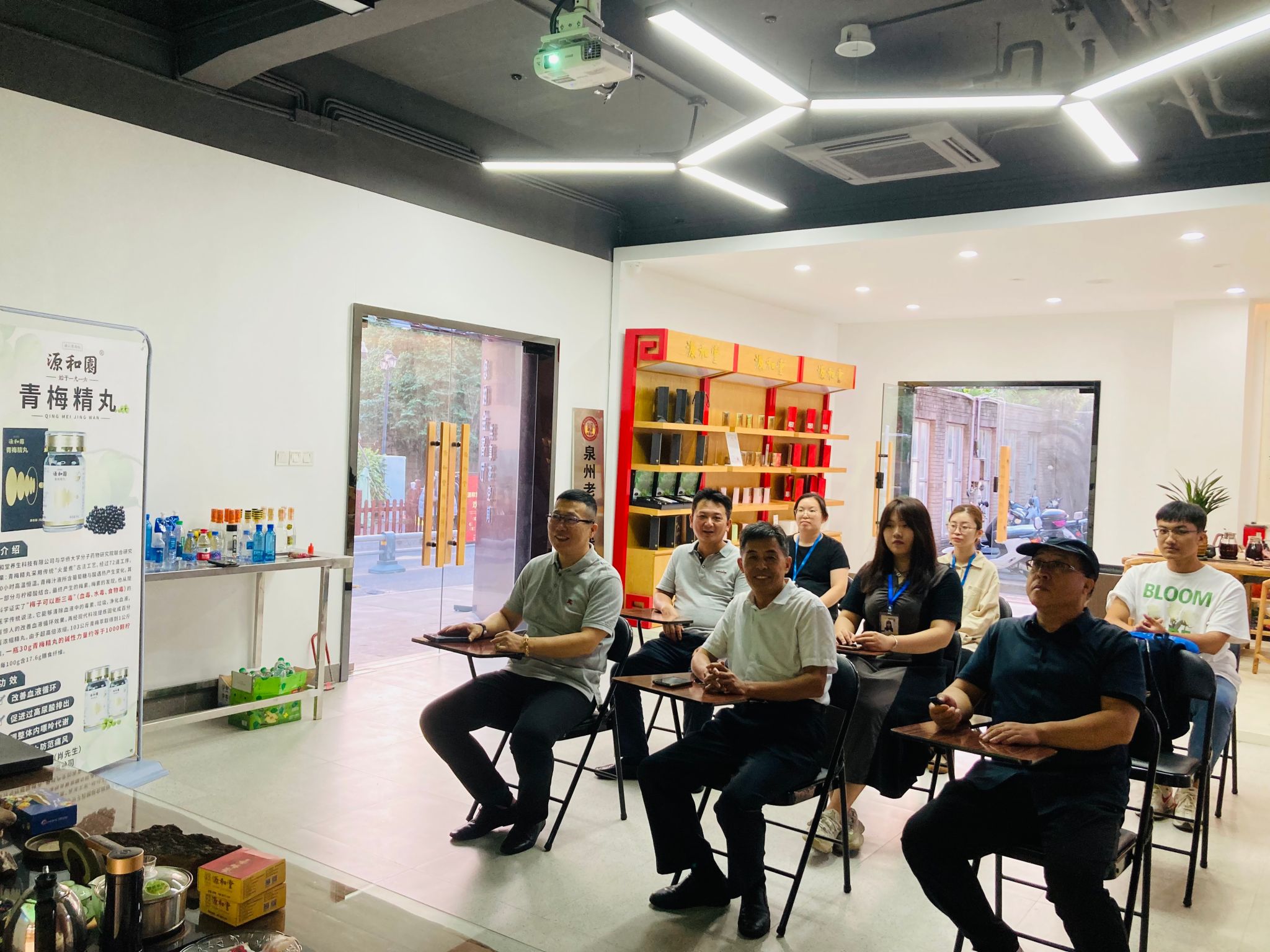 党委书记武玉洁、药学系王立强教授、辅导员罗陈娟、刘晓圆老师一行走访了有近百年历史的“中华老字号”——源和堂。