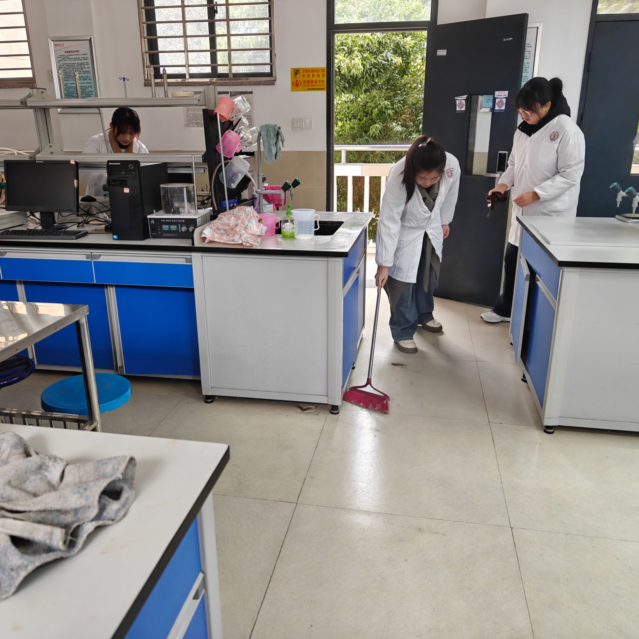 实验室学生安全活动检查表,报送联系老师。由责任老师再对实验室进行逐一检查,在检查过程中大部分实验室卫生条件良好,物品摆放规整,仪器维护和使用合理,过程中各班级同学分别做好实验室安全排查记录和卫生打扫工作,各班级学生分工合作,实验室安全卫生检查活动顺利结束。