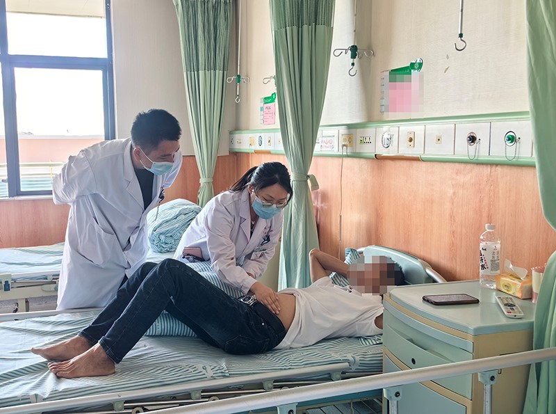 本次教学查房病例为“骨髓纤维化”,典型体征为“脾脏肿大”。查房中,周炼炼医生从规范的体格检查、使用工具准确测量病灶的范围大小,并强调和谐沟通、人文关怀等细节上指导实习医生们在问诊过程中的注意事项。
