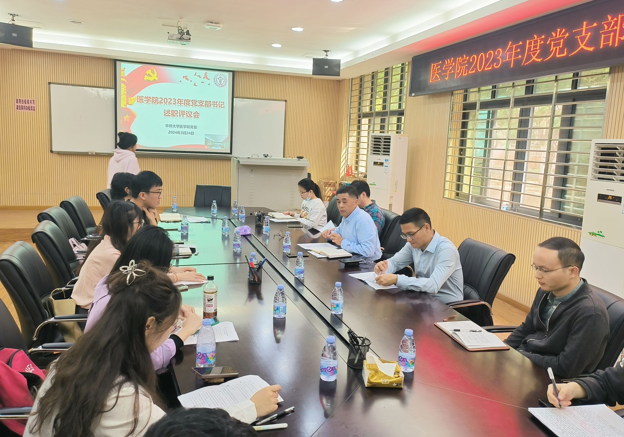 党委在德润楼228会议室召开2023年党支部书记述职评议会。会议由学院党委书记武玉洁主持,学院党委委员、党支部书记、党委组织员与会。