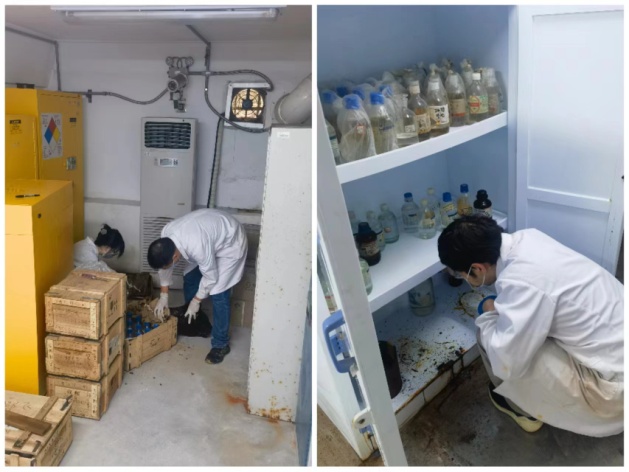 危化品周转库管理老师刘嘉、王晓以及助管丁雪艳、伍星烨对库内存储的易制毒、易制爆化学品进行了整理与盘点工作。