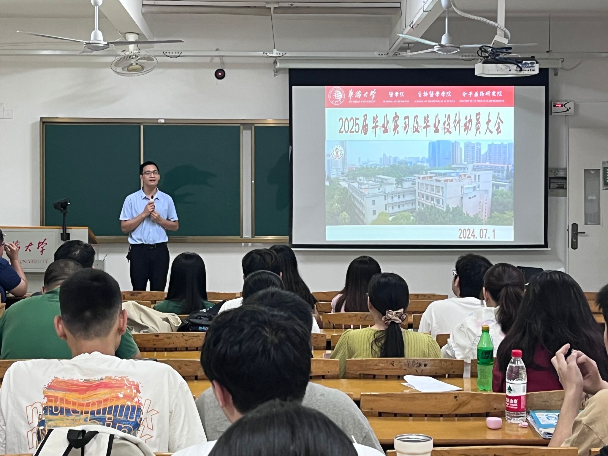 于7月1日在经管楼204楼召开药学专业2025届毕业生实习启动大会。本次会议由药学系副主任杨会勇老师主持,教学副院长王福财、毕业实习指导老师、本科教学秘书和全体2025届毕业班学生出席会议。