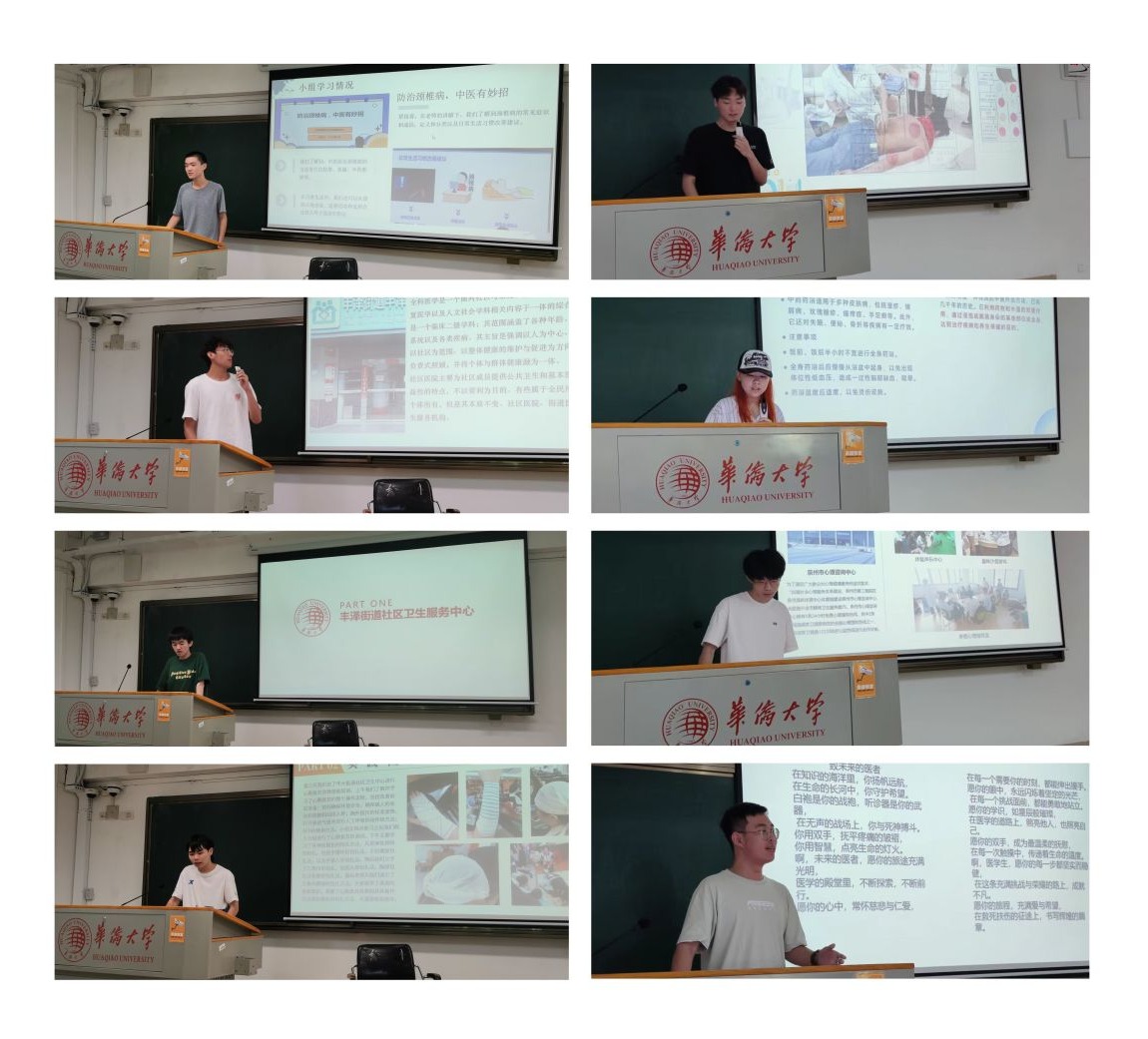 8位组长分享了在丰泽街道社区卫生服务中心、华大街道社区卫生服务中心、泉州皮肤病防治院和泉州市第三医院见习过程中的所见所闻,在此次实践体验中学习到了专科医院在特定领域内的专业特色和专长,社区卫生服务中心的服务广泛性和服务综合性。学生们深刻认识到专科医院和社区卫生服务中心在医疗体系中发挥的重要作用。