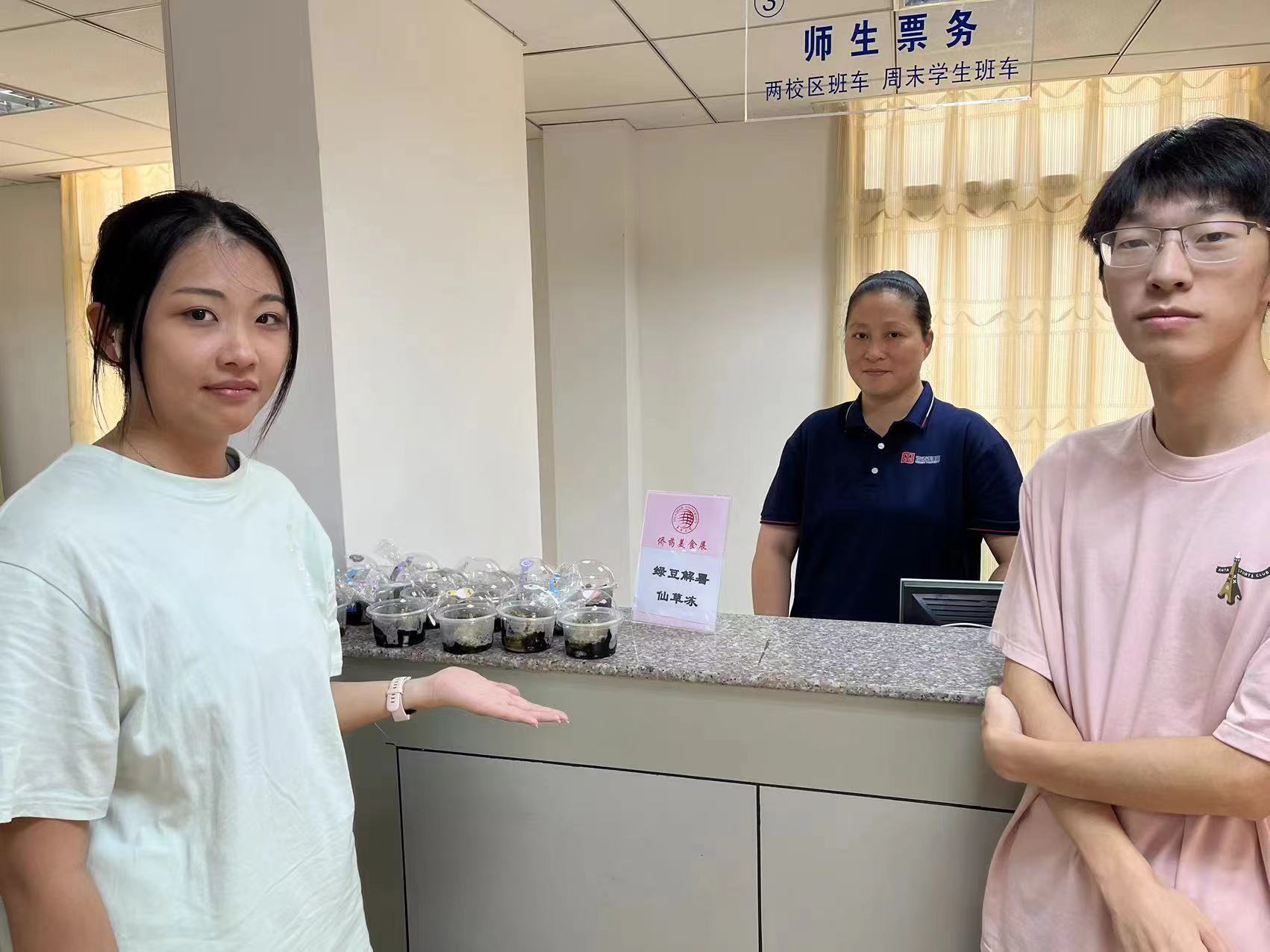 2023级临床1班的同学们将制作的86份绿豆解暑仙草冻分享给在东南医药集团开展中药材种植工作的2023级药学1班和2班的同学们。