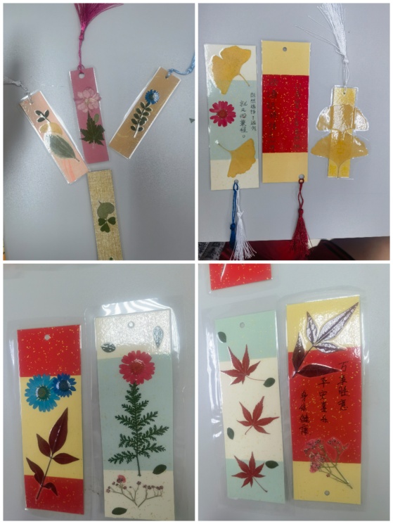 活动开始,由连晨蕾老师对身边常见中草药如车前草、鬼针草、益母草、酢浆草等一一进行了介绍,并引经据典,用寓教于乐的方式让小朋友们对中草药的命名依据、主治功效等特点有了更加形象的理解。然后,在实验室其他老师的带领下,小朋友们自主选择形态各异的植物蜡叶标本,发挥想象力,自行设计文化书签,通过过塑、修整、挂流苏等步骤,一张张精美、富有童趣的书签就做好了。