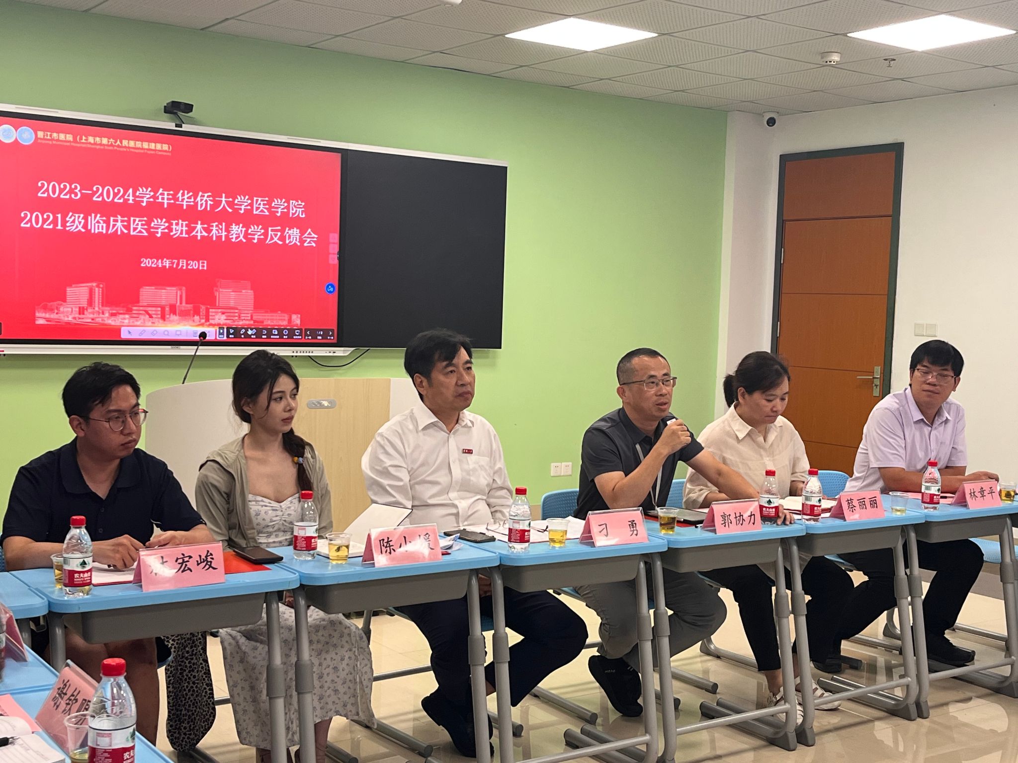 7月20日上午,我院2021级临床医学(晋江班)2023-2024学年本科教学反馈会于晋江市医院(上海市第六人民医院福建医院)举行,我院院长刁勇,晋江市医院(上海市第六人民医院福建医院)副院长郭协力、科教科副科长蔡丽丽、各教研室主任及秘书,2021级临床医学(晋江班)全体同学参加会议。