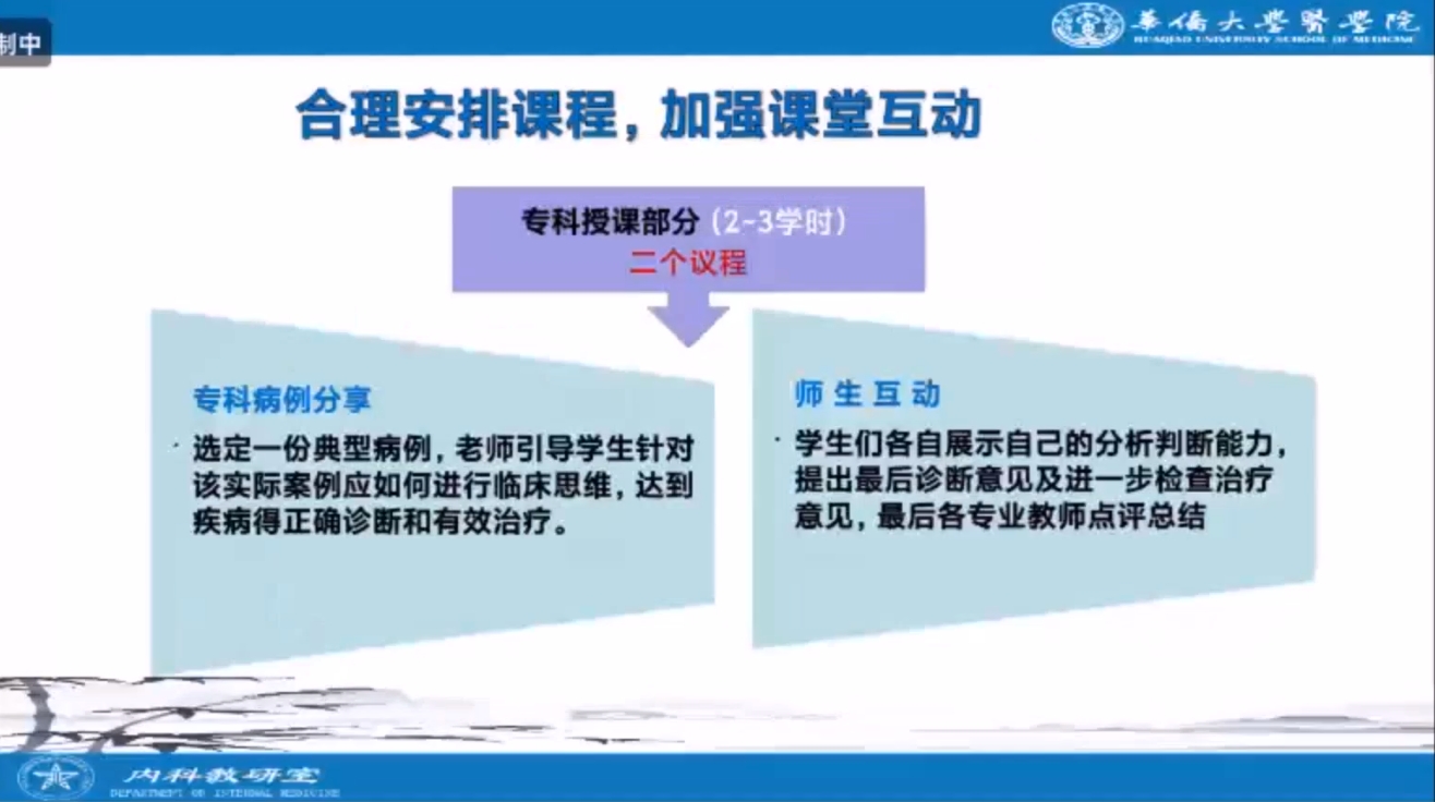 附属厦门长庚医院内科学教研室主任钟德金副主任医师提出《疾病诊断与临床思维(研讨课)》这门课程是临床学生从临床理论走到临床实践的桥梁,应进一步突出和强化学生把理论与实践相结合的能力以及解决临床问题的胜任力。