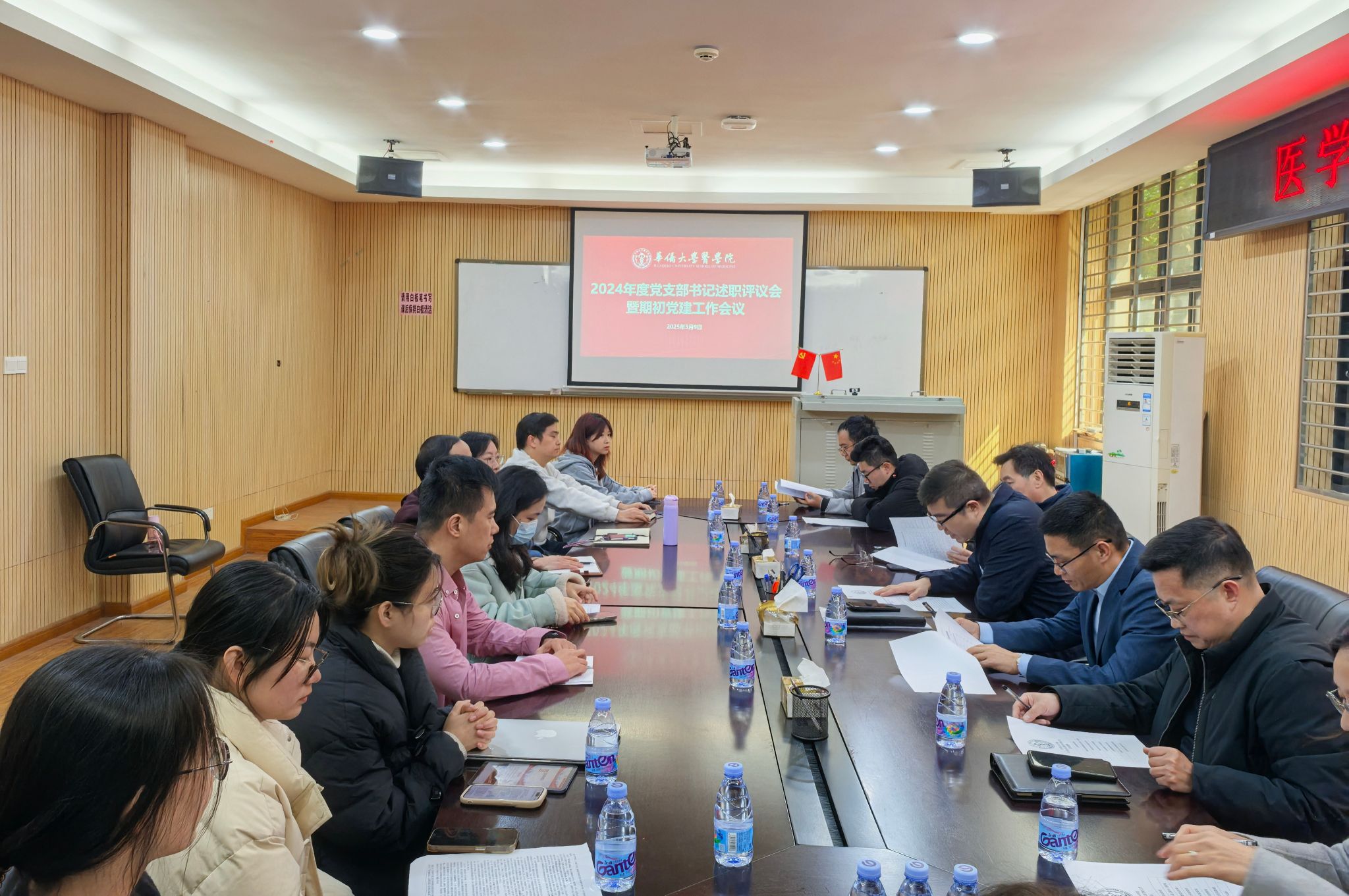 在德润楼228会议室召开2024年度党支部书记述职评议会暨期初党建工作会议。学院党委委员及全体党支部书记与会。