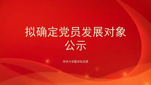 根据发展党员公示制的相关规定,经党组织培养考察,拟确定下列同志为发展对象,现进行公示(名单见附件),党员和群众对以下同志如有意见或建议,可在公示期内向探花av