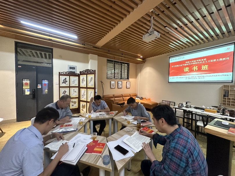 2023年5月15日晚,学院党委在教工之家开展“学习贯彻习近平新时代中国特色社会主义思想主题教育”专题读书班集中研读学习第四期,本期由学院副院长李招发领读党的二十大报告,其他党政领导自学研读了学习内容,并交流了学习体会。