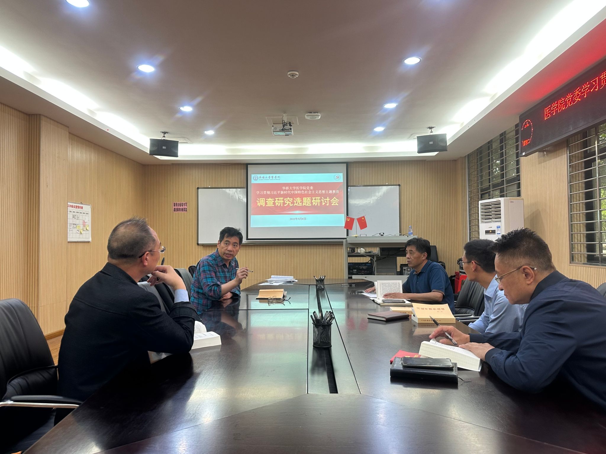 为扎实开展“学习贯彻习近平新时代中国特色社会主义思想”主题教育,增强调查研究工作的系统性、针对性、实效性,进一步推动调研工作走深走实,5月8日,学院党委在胜骏楼228会议室召开主题教育调研选题研讨会,学院党委领导班子成员全体参会,会议由学院党委书记武玉洁主持。