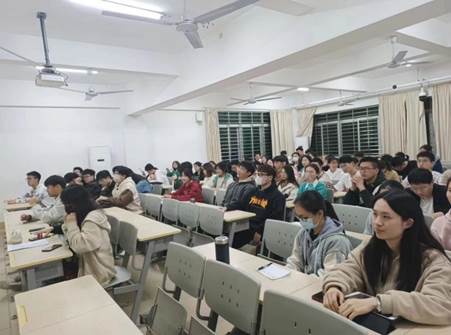 接着,刘教授详细介绍了著名华侨爱国人士陈嘉庚先生的事迹,并倡导青年一代要主动学习嘉庚精神,增强自身本领,时刻挂记家乡,勉励大家“中国的伟大复兴一定离不开青年人的归乡建设”,投身于祖国需要的地方,为社会贡献自我,实现人生价值。