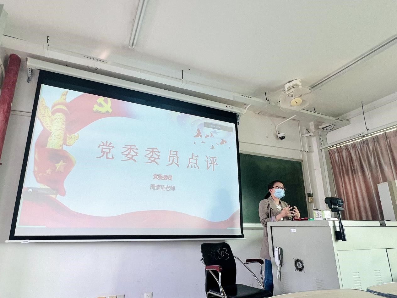 党委委员周莹莹老师对本次会议召开情况和2022年度支部工作进行点评。首先,对支部一年的工作给予肯定。其次对于这次党支部组织生活会与民主评议会中的批评环节大家批评的很中肯、很深入,周莹莹老师表述到以铜为镜,可以正衣冠;以史为镜,可以知兴替;以人为镜,可以明得失。批评是一个提升自己的机会,我们应该理性的对待别人的批评,避免去年的批评问题在新的一年再次出现,希望大家能够深入思考自己存在的缺点,不断改进、不断完善、切实有所提升,有所进步,在未来都能够更好的发展和成长。