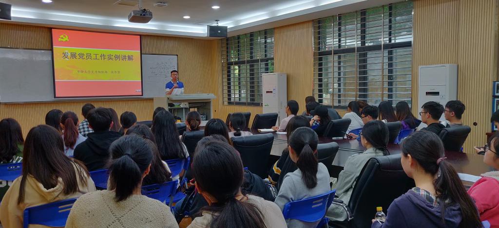 校党委组织部组织科科长颜良举针对党支部标准化建设做了详细的讲解。他从组织体系设置标准化、班子队伍建设标准化、党员教育管理标准化、党内组织生活标准化、活动场所建设标准化、工作运行机制标准化、基本工作保障标准化七个方面,实现标准化建设目标,强化党支部政治功能,提升服务功能。校党委组织部组织科侯泽贤对发展党员程序做了专题培训。他从发展党员的五个阶段,讲解了具体流程、注意事项、具体要求,并对各类表格填写、材料撰写进行了规范化指导。他还以党建材料检查中发现的问题进行了案例教学。