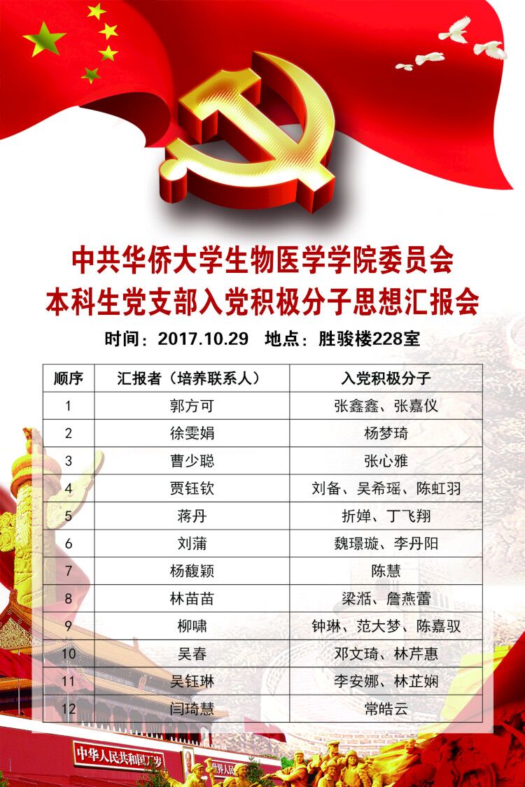 2017年10月29日晚,我院本科生党支部于学院228会议室召开了入党积极分子思想汇报会。参加本次大会的有学院党委秘书(兼)张振岳老师及支部全体党员、预备党员、发展对象、入党积极分子。会议由蔡敏同志主持展开。
