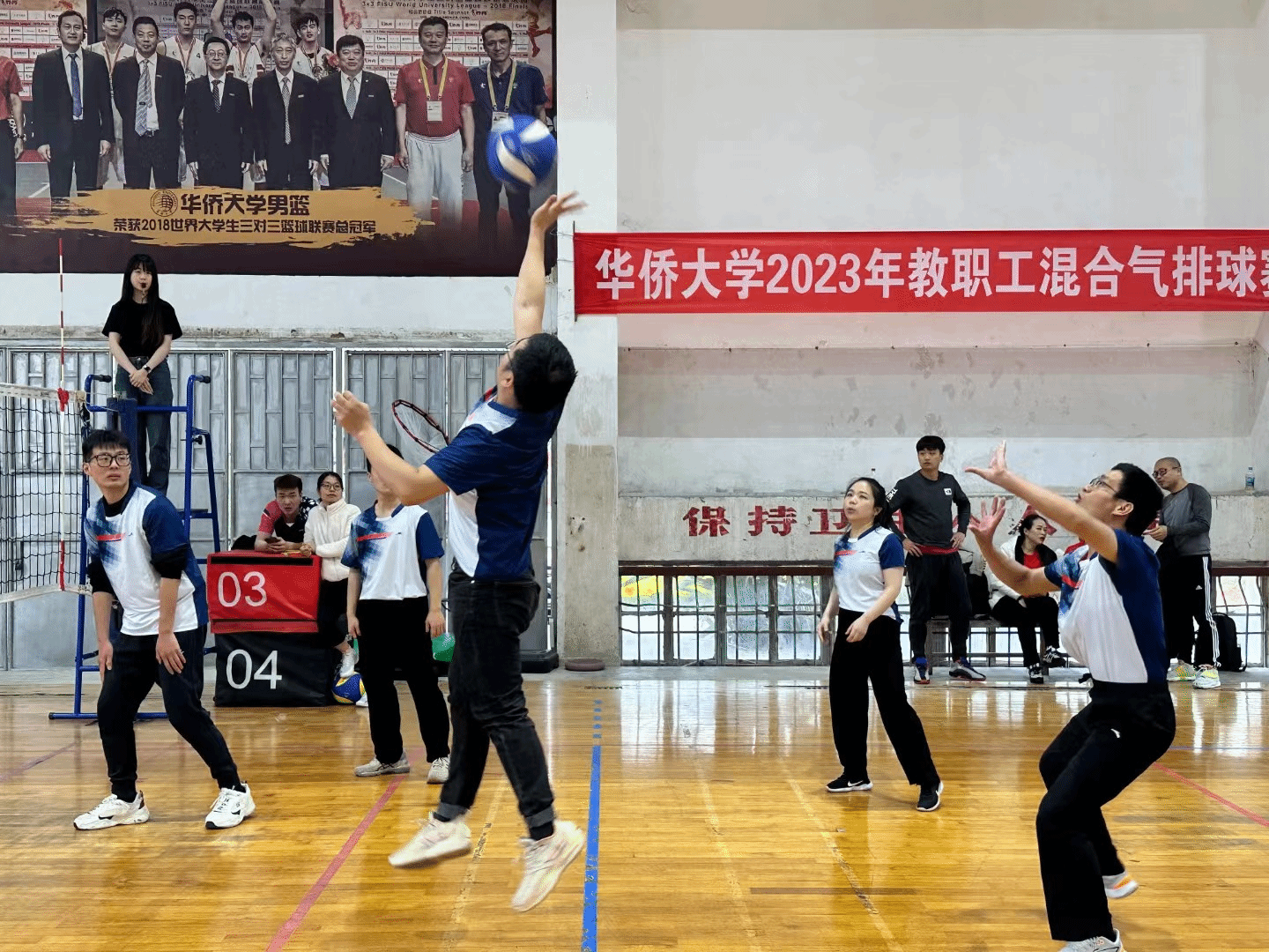 为全面丰富教职工文体生活,提高广大教职工的身心素质,增强教职工团结协作与顽强拼搏的意识,学院工会积极组织了两支队伍,参加“华大杯”教职工混合气排球比赛。