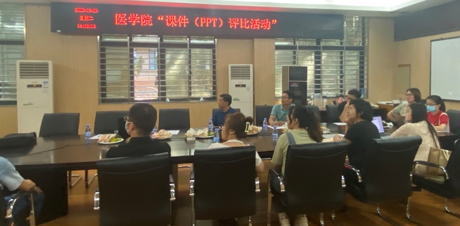 党委书记武玉洁、副院长王福财、临床医学系主任佟丹丹、福建省教学三奖获得者王勇、校宣传部张振岳以及学院周莹莹、连晨蕾老师等受邀出席活动并担任评委。此次评比采用自主报名和随机抽取方式对31份课程教学PPT按科学性(15%)、逻辑性(15%)、规范性(30%)、应用效果(10%)、原创性(20%)和完整性(10%)七个方面进行评比。评委对每份份课程教学PPT随机抽取一章节进行评审打分,并对其中存在问题逐一进行了反馈。