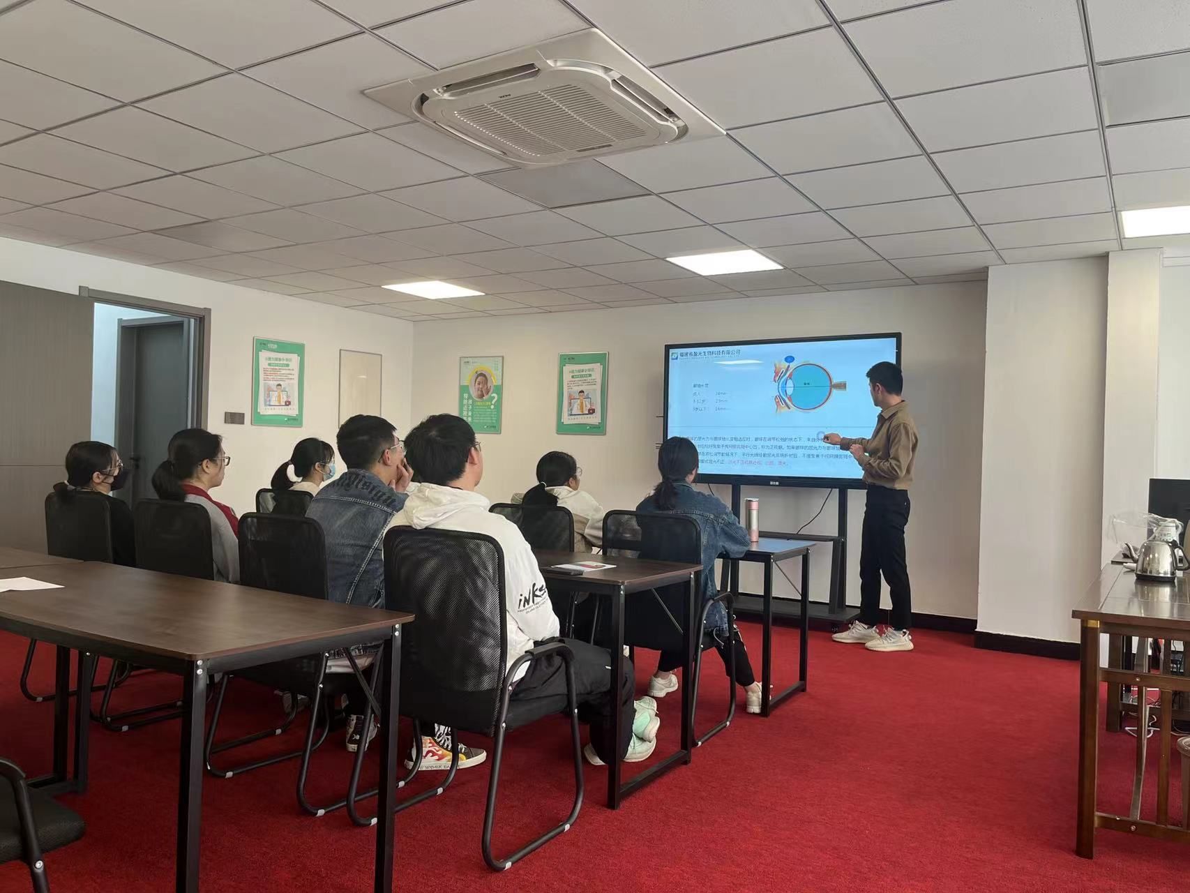 3月11日下午,在王立强老师的带领下,近20余名药学和临床专业的同学前往盈光驿站走访学习。盈光驿站的业务主要是为了帮助青少年们改善近视眼等眼类问题,对青少年眼部健康发展具有重要意义。首先,公司负责人吴经理通过从公司起源,创办历程,创办初心,探花av等各方面的讲解,让同学们初步了解了企业的发展历程,公司培训部黄老师又对大家普及了眼部知识科普以及专业手法的理论讲解,还让同学们进行了亲手操作,同学们通过实践,学习到了如何在面部通过摁压穴位和药物作用来达到使眼睛休息,使视力逐步恢复。在眼部视力护理实操后,同学们还学习了瞪眼法,这种方法可以使眼部肌肉充分运动,以达到舒缓眼睛的效果。离开企业前,每位同学又进行了一次视力测试,惊奇的发现每个人的视力与刚到访时的测试相比,都有不同程度的提升。据悉,盈光驿站的许多产品都联合探花av