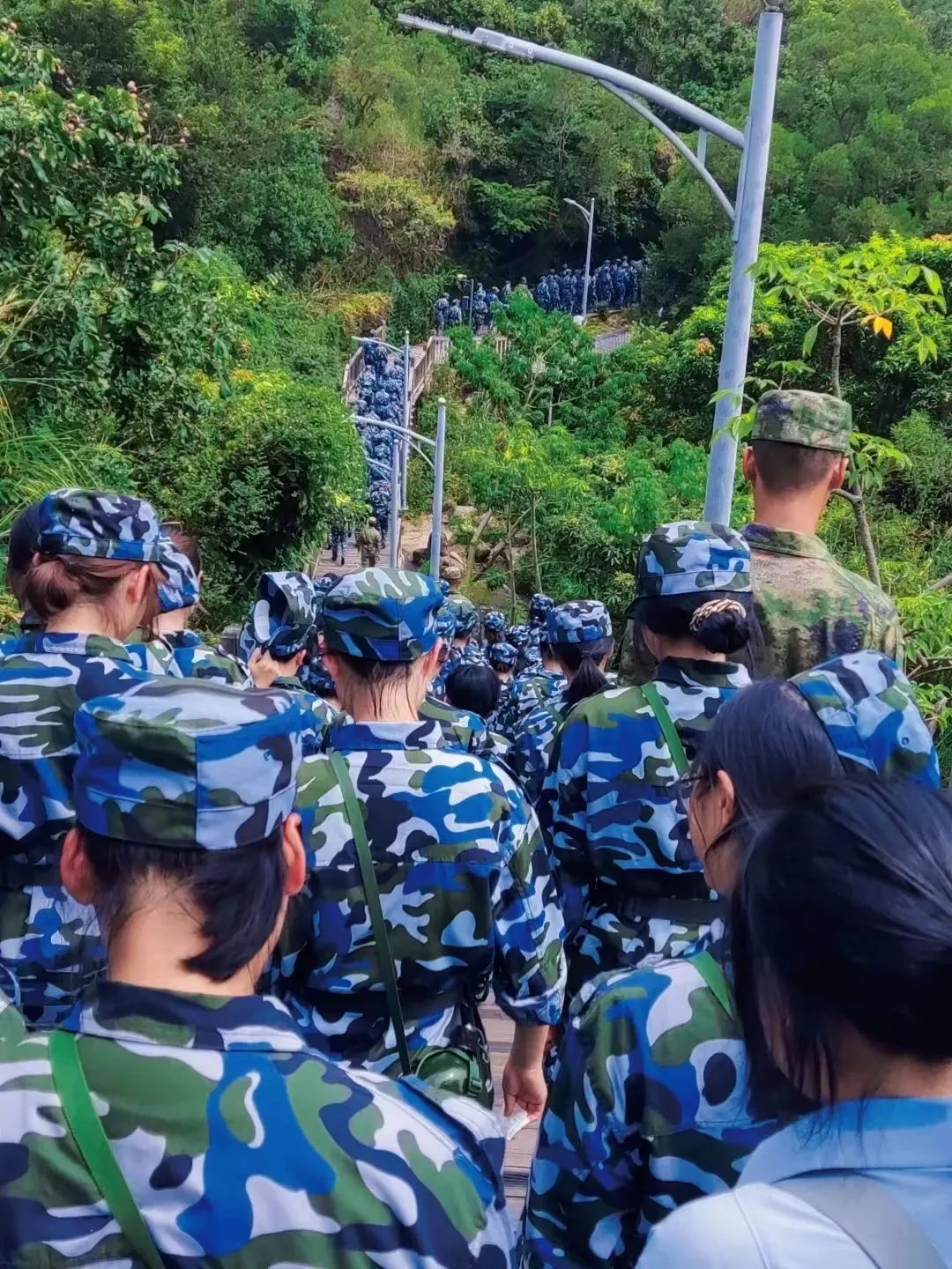 迷彩映青山,汗水浸衣裳,互相鼓励,不言放弃,不让一人掉队,习得了坚持,吃得了苦,太阳洒下水彩,描绘此刻最美的画面。