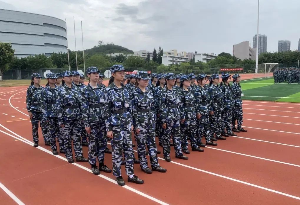 上午,不急不缓的乌云趴在同学们的上方,没有燥热不堪的空气,只有一排排新生们衣着整齐并专注地听着教官训话。在教官的指令下,他们正式开始操练。立正、稍息、向左向右转。他们步履稳健,精神抖擞,飒爽的英姿刻在了风中。