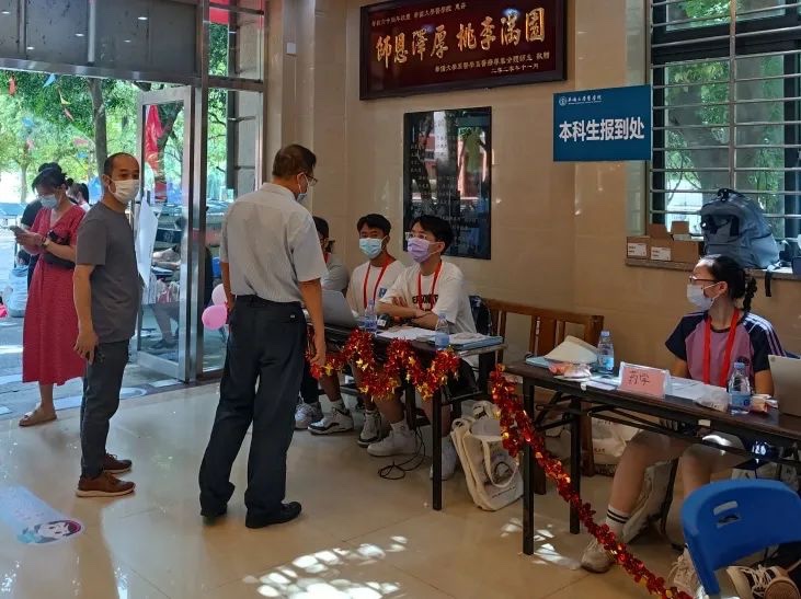 的热情,学长学姐以及老师们做好了充足的准备。报到结束后的新生们,对校园依旧陌生,但没有关系,学长学姐们拥有变身导航的超能力。与此同时,学院也贴心地为家庭经济困难的学生开启了“无忧入学”绿色通道,为他们解决学费缴纳上的问题随着眉间褶皱的消散,华园又增添了一个个明媚的笑脸。学校与学院的各位领导也来到了迎新现场,在关注新生入学的同时,也为迎新工作提出了宝贵意见。