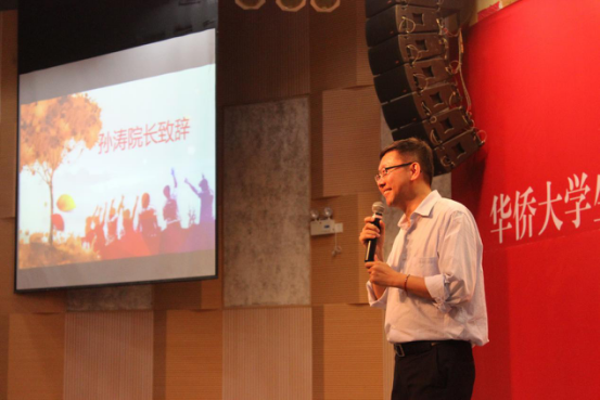仪式在校歌《一方沃土》中拉开序幕。校歌唱罢,孙涛院长为毕业生致辞,他用饱含深情的话语带大家回忆了大学四年的美好时光,用满怀真挚的言语向大家提出殷切期望,最后表示“生物医学学院会是生医人永远的家。”