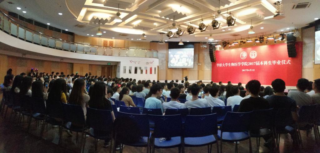 生物医学学院2017届本科生毕业仪式在这里隆重举行。生物医学学院院长孙涛,副院长林俊生、李招发,党委副书记郑莉,教师代表杨会勇、马俊杰、刘接卿、李文华、蔡双凤、邱飞、庄贞静、唐明青、徐先祥、刘嘉、徐韬、周莹莹、张振岳,44名2017届本科毕业生以及全体本科非毕业生欢聚一堂,共同见证这一美好时刻。
