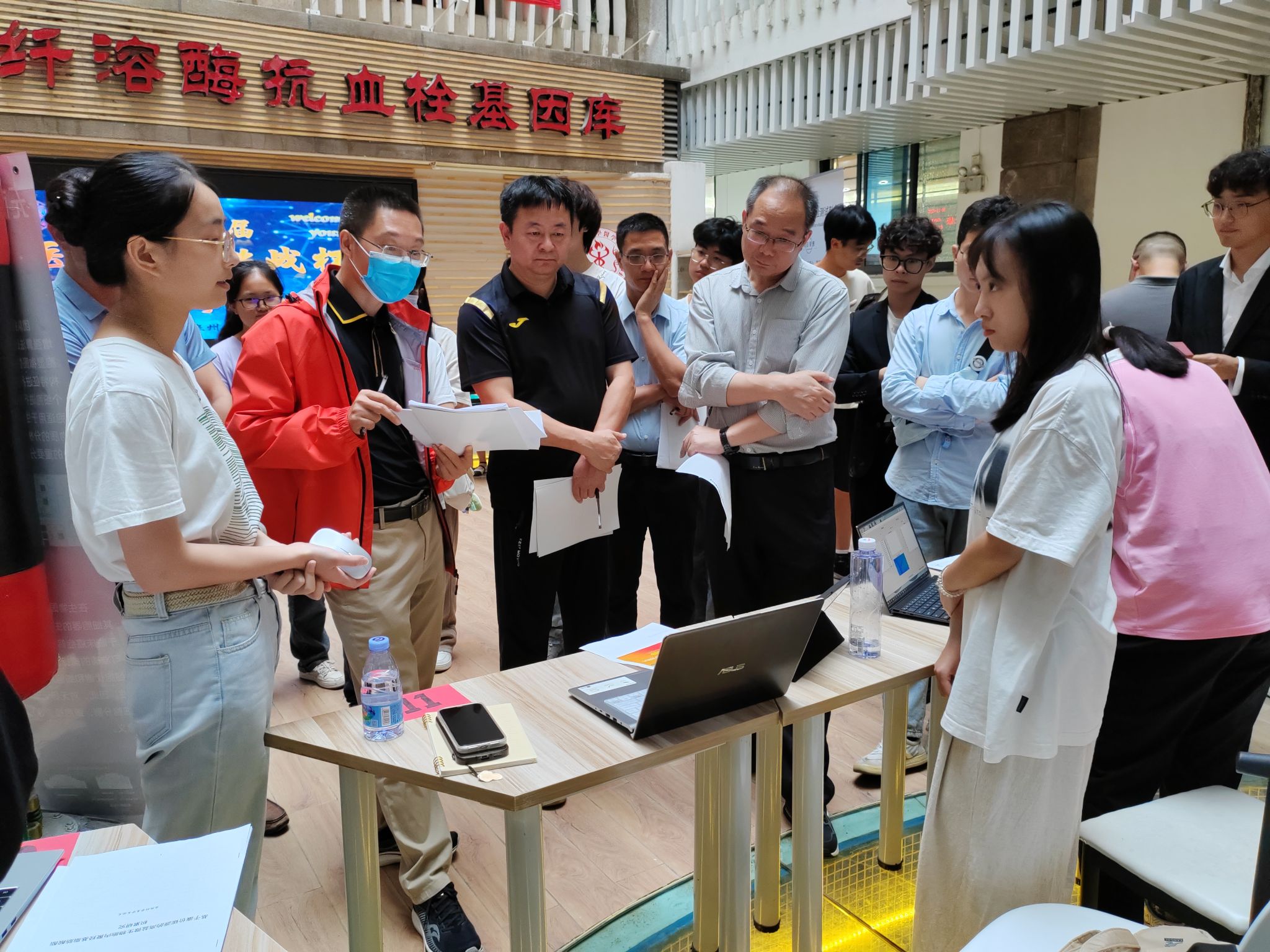 副院长王福财、仁丰药业有限公司总经理李水兵、第一医院血液科副主任辛鹏亮、第十八届挑战杯国赛铜奖指导教师陈洪淼。