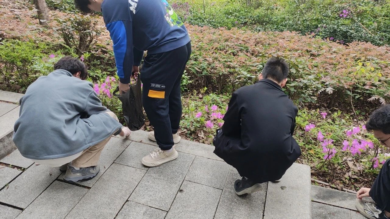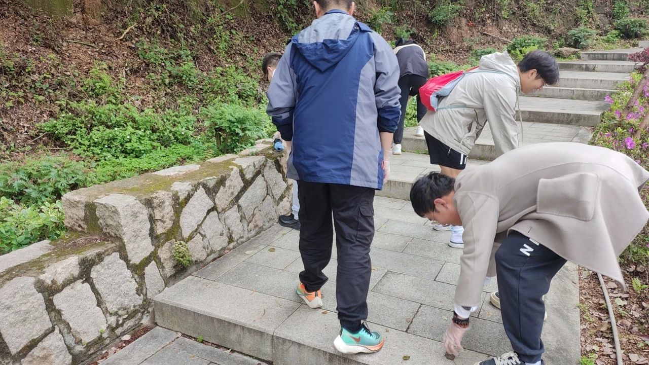 在享受爬山乐趣的同时,同学们留意沿途的垃圾并及时捡拾,对积叶多的台阶进行清扫,为公共卫生贡献我们的一份微薄力量。在此过程中,我们也用摄影记录下我们珍贵的共同记忆。