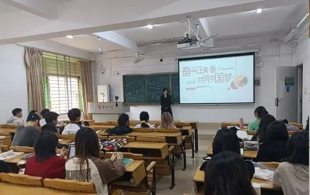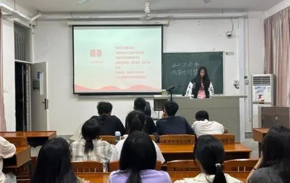 2023级临床医学二班团支书冯雅琪以《奋斗正青春、 共筑中国梦》为主题,分享了党的百年奋斗历程与伟大成就,讲解了党的基本理论、基本路线和基本方针,分析了成长为新时代好青年的目标与路径。