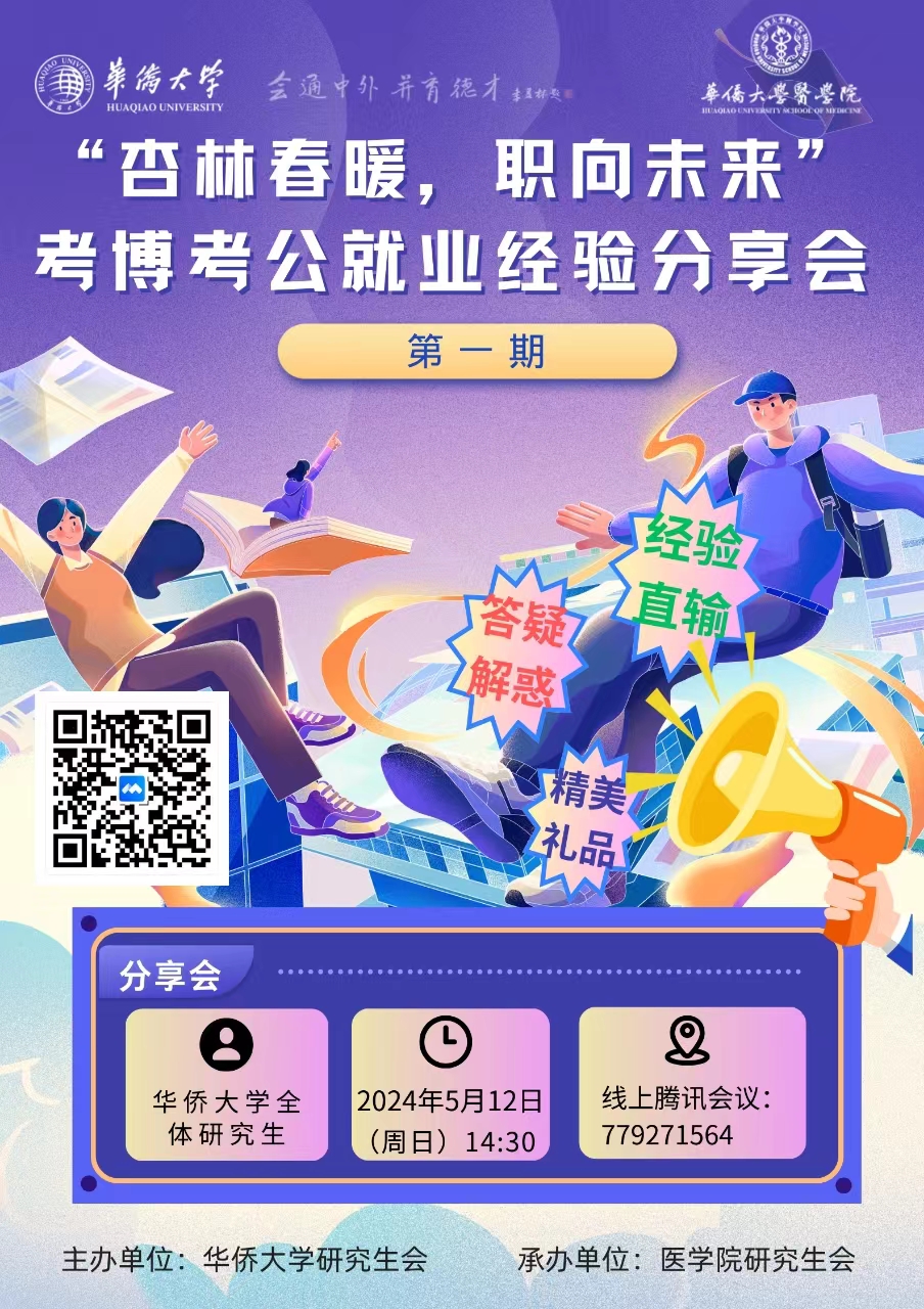 将举办“杏林春暖,职向未来-考博考公经验分享会”活动,本次活动将邀请优秀学生代表,分享他们的备考经验、学习心得、应试技巧及职业规划相关知识,让同学们受益于前人的经验,能够更有针对性的进行职业选择。