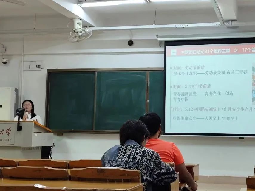 在本次培训中,蒙老师凭借工作经验与对基层团组织的了解,从开展原则、推荐主题、典型案例三个方面为同学们进行了全面且细致的指导。